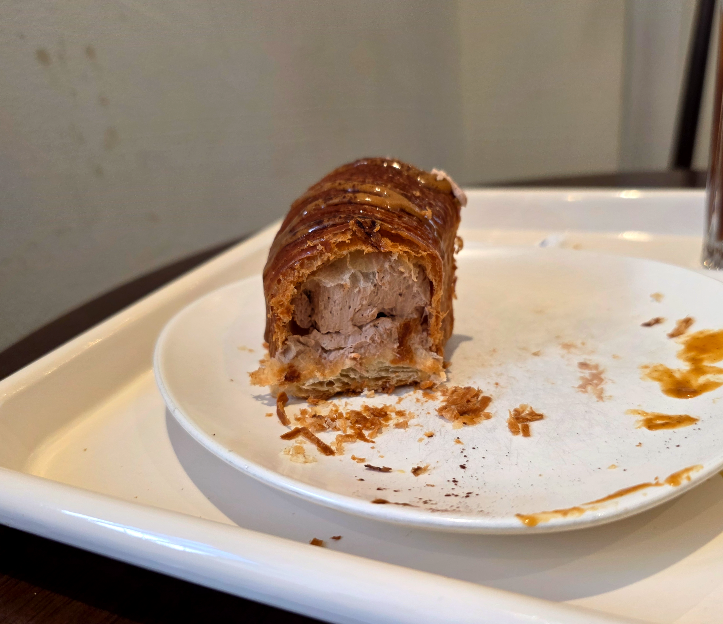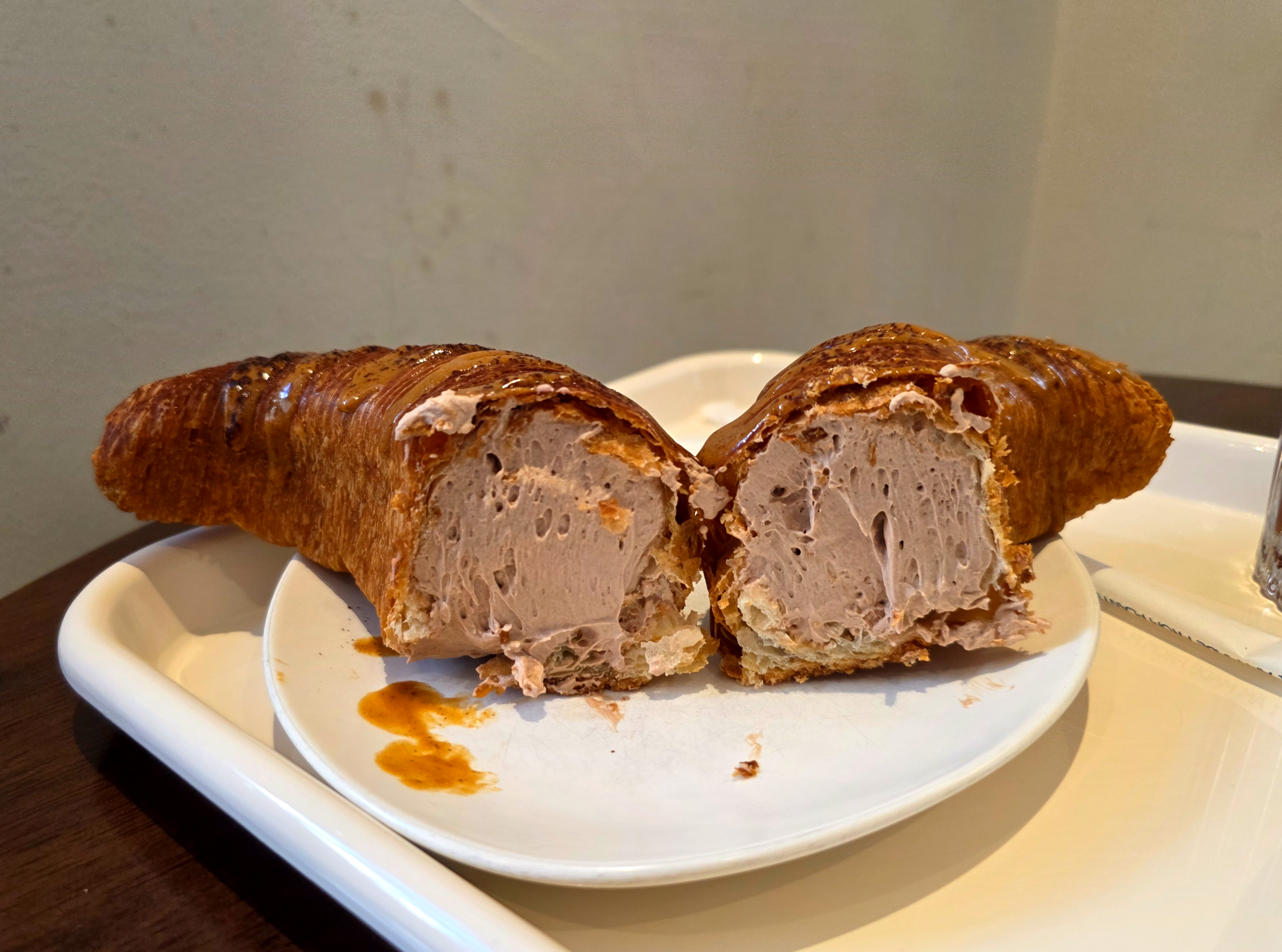 크루아상 위에 헤이즐넛 소스가 뿌려져 있었고