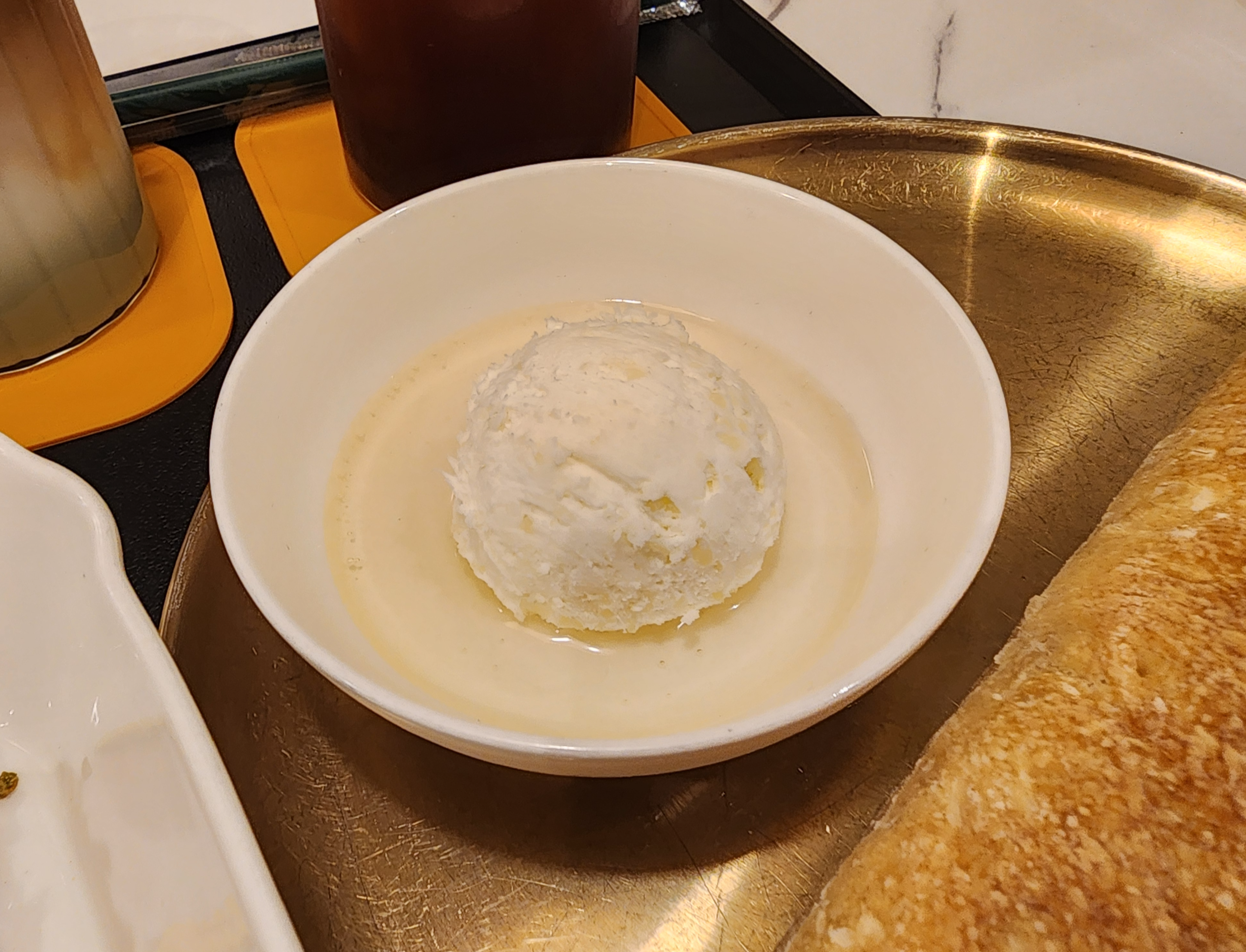 카이막과 꿀이 한 번에 제공되었습니다.