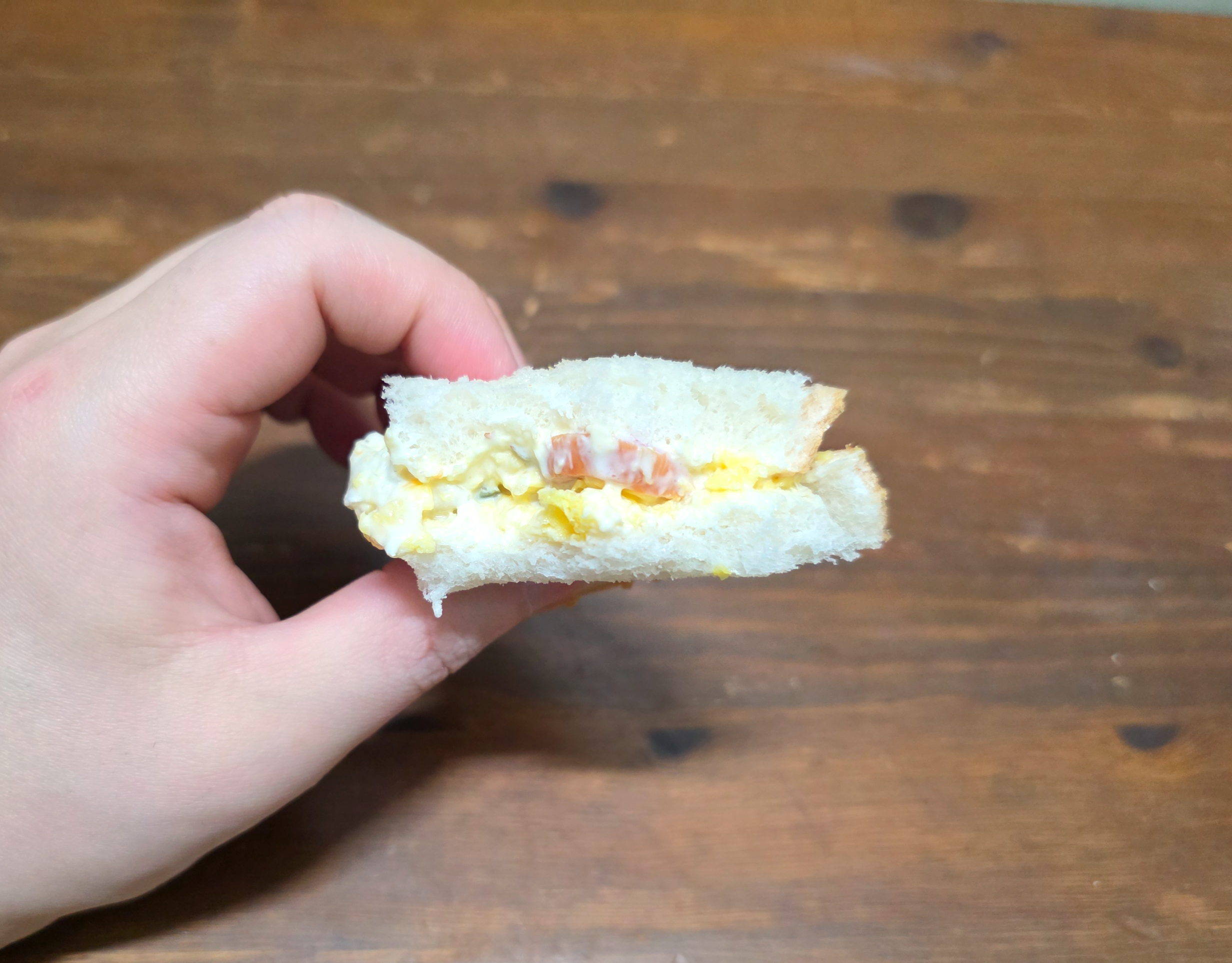 빵 사이에 스크램블 소시지가 들어있었습니다.