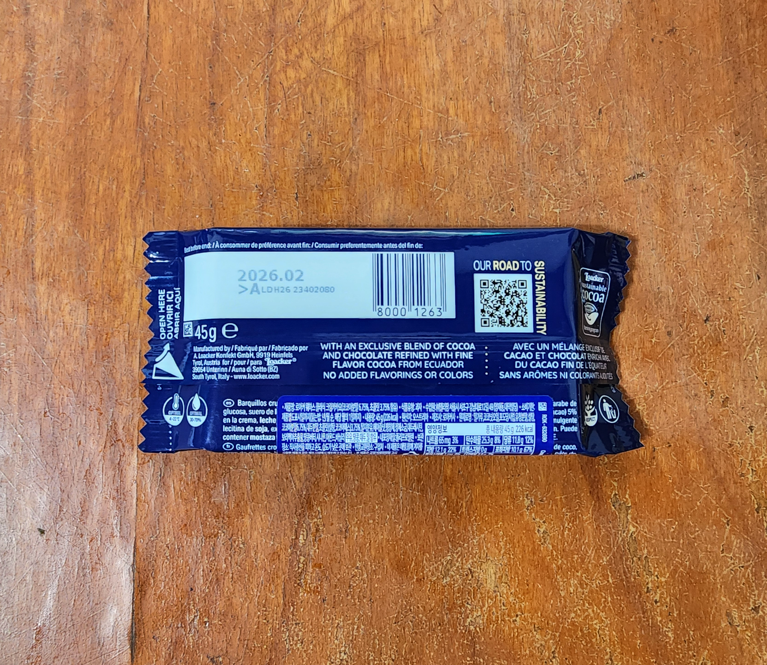 개당 총용량은 45g에 226kcal였고